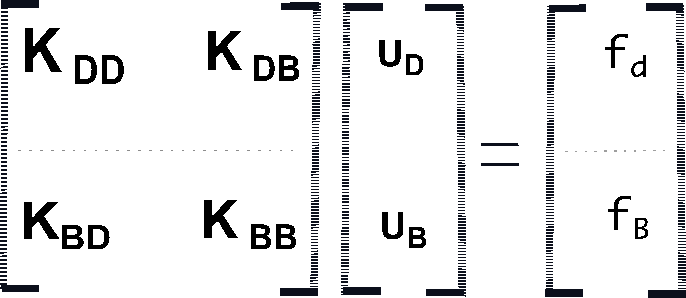 To solve the problem, we remember that we made our assembling systems ready using the set/unseting process in boundaryCondition() for domain and boundaries as shown in Figure: 2 where we can consider the subscripts 'D' is for domain and 'B' for boundary.