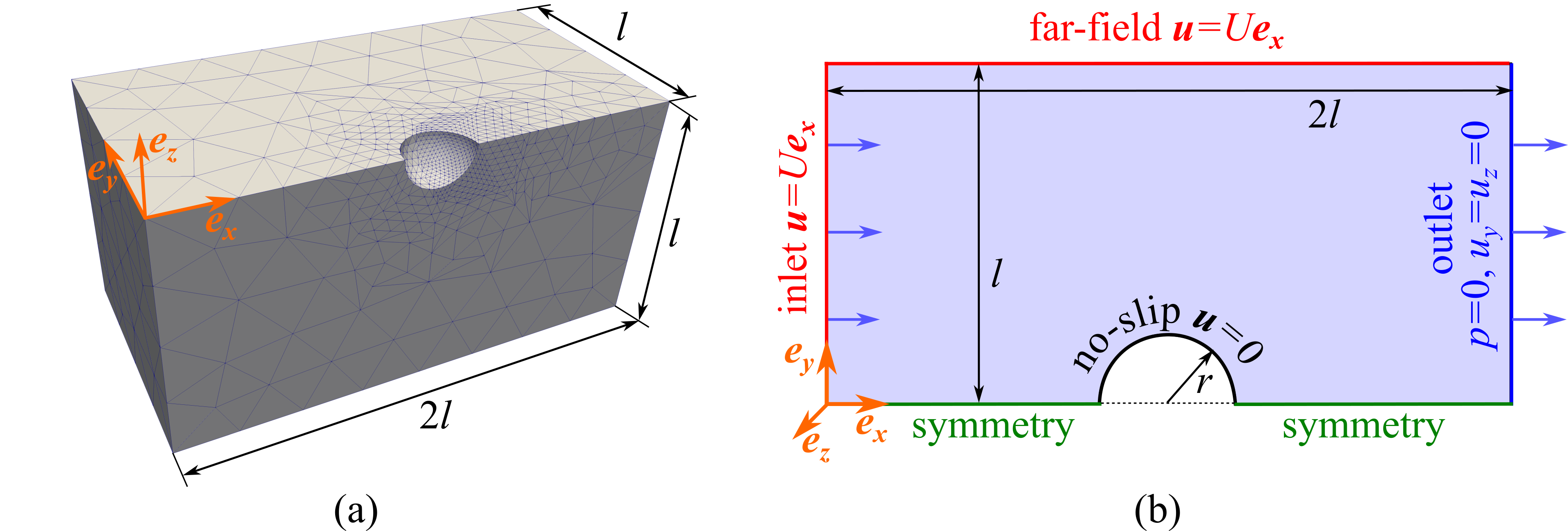where \(U\) is the scale for the velocity and \(L\) is a relevant length scale. For the problem of the fluid flow around a sphere, considered in this tutorial, the far-field velocity plays the role of the velocity scale, while \(L=2r\), where \(r\) is the radius of the sphere.
